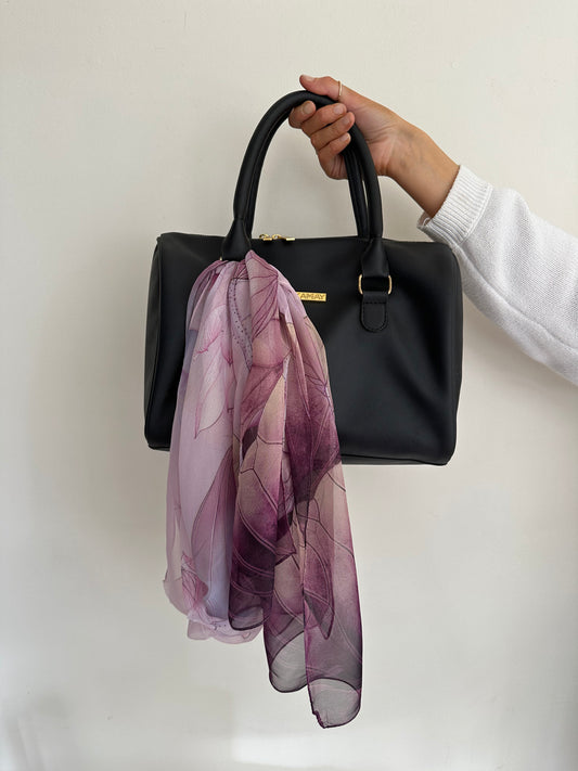 The scarf is such a beautiful touch to the bag.